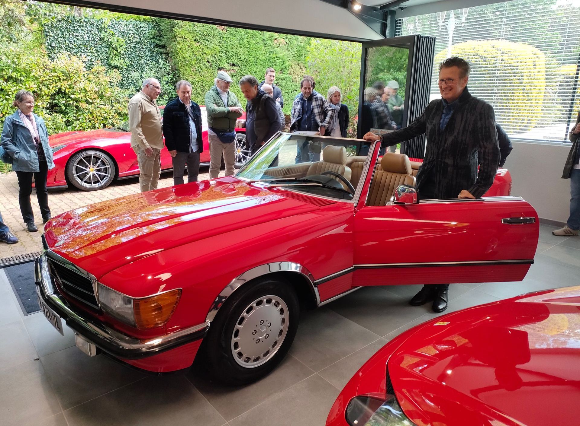 Arrivée de la Mercedes 350 SL Rosso Corsa